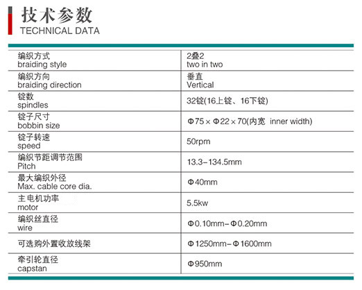 32B立式高速编织机主要用于高柔软度要求的电梯电缆及胶管等编织。